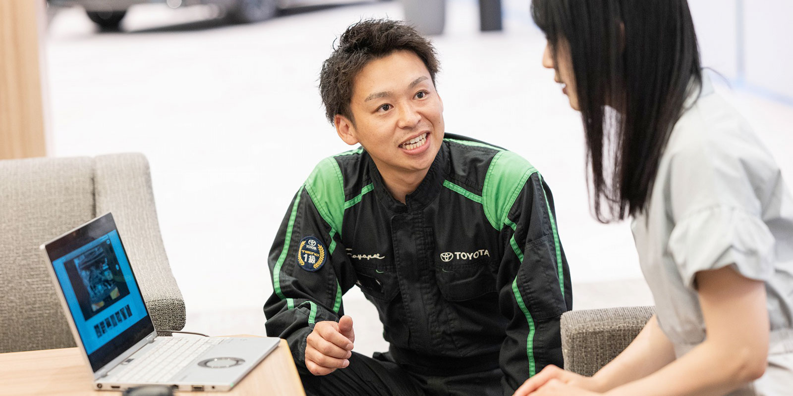 整備の担当として単に車をみるだけではなく、お客様の生活の一部をサポートするという意識で取り組んでいます。サービス内容の説明や整備途中の連絡など、お客様との会話を通じて、お客様の気持ちに寄り添うことを心がけています。