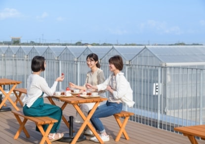 品種はとちおとめ、やよいひめ、あきひめ、あまおとめなど7種類。約19万本のいちごが栽培されています。いちご狩りができる期間は12月中旬から5月末位までと限られていますが、園内にある「グランベリーカフェ」は通年営業しており、オフシーズンでもいちごを楽しめるメニューがいろいろと用意されています。
