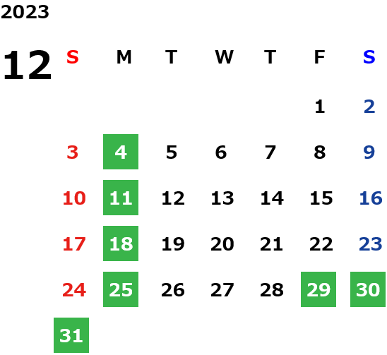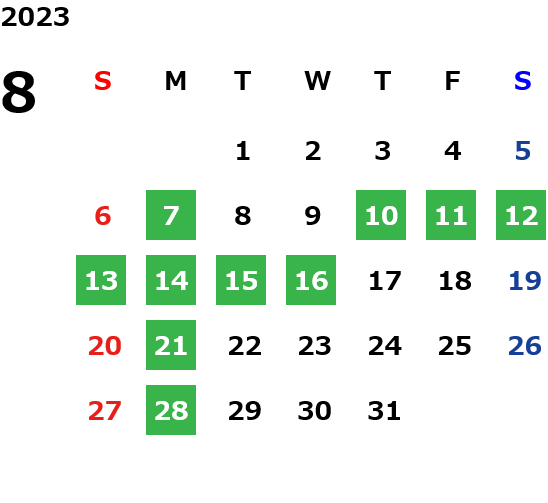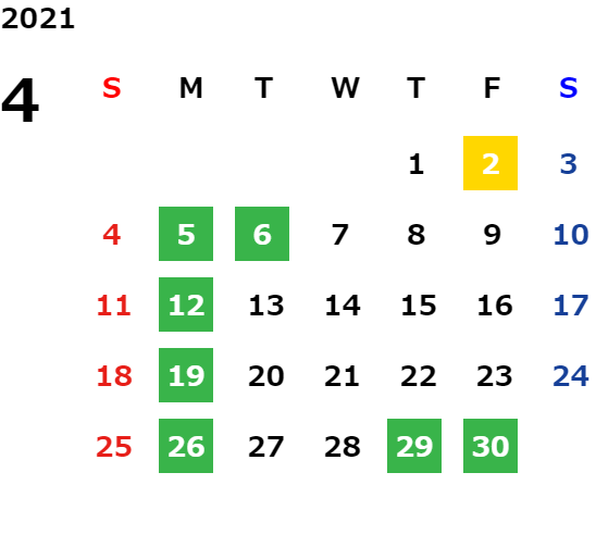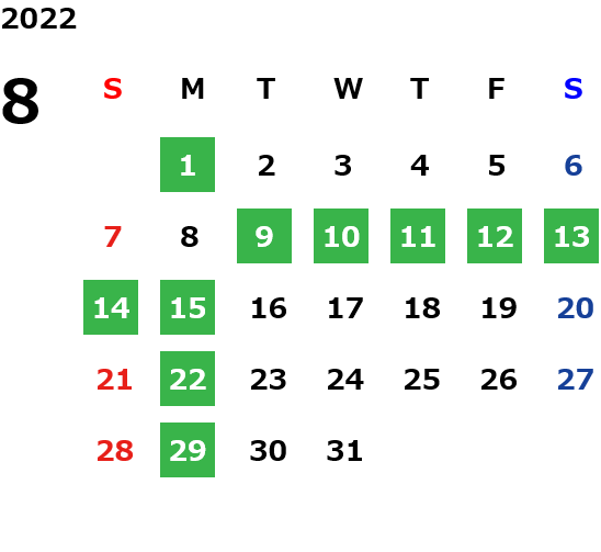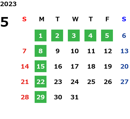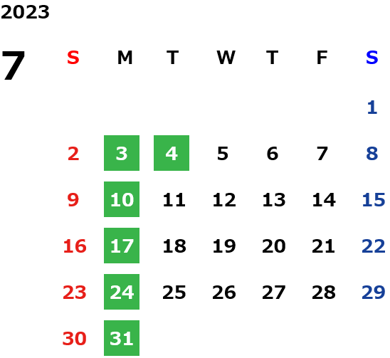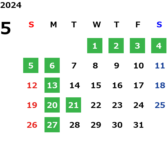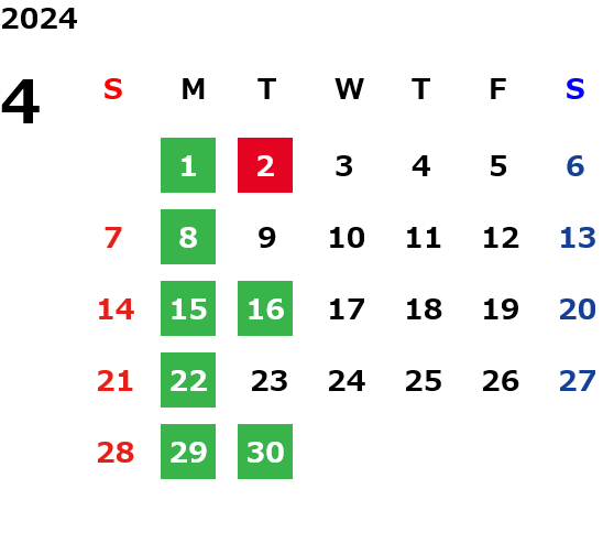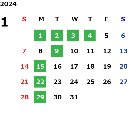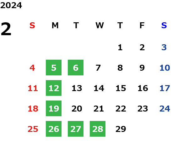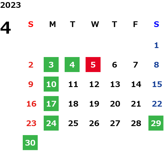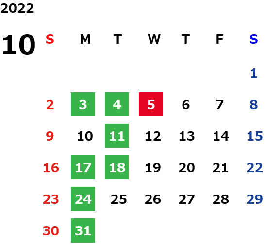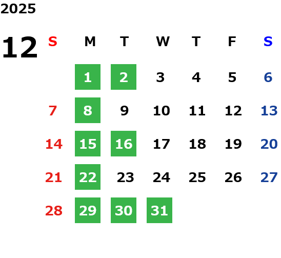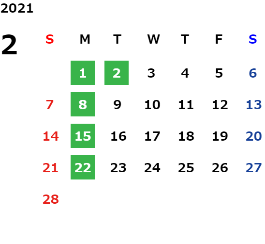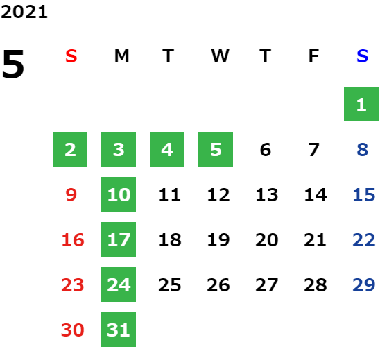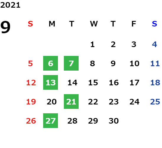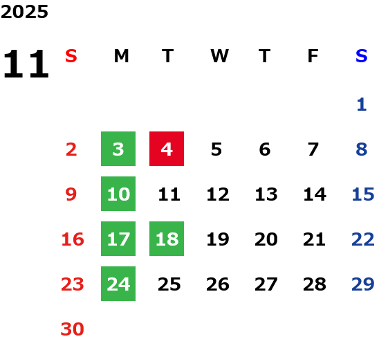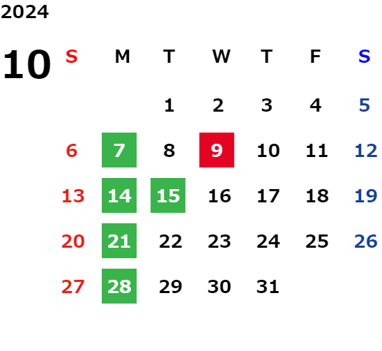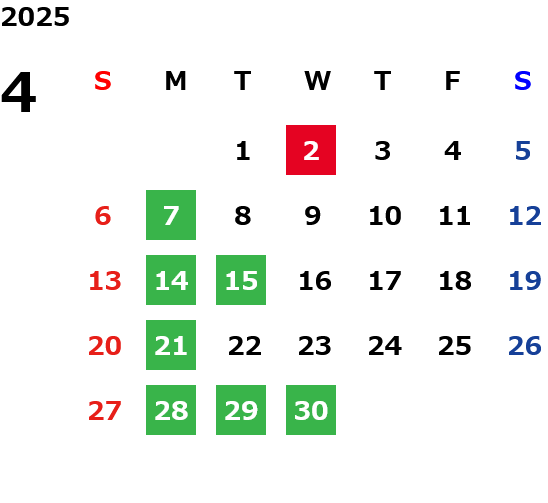 月曜定休日を基本としておりますが、不規則でお休みを頂く場合もございます。定休日の詳細は営業日カレンダーをご参照ください。