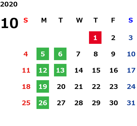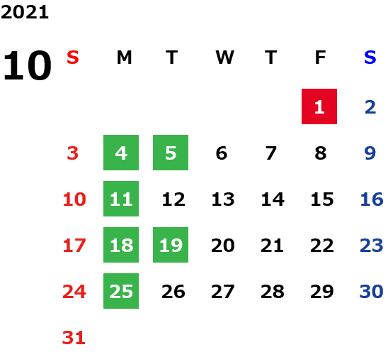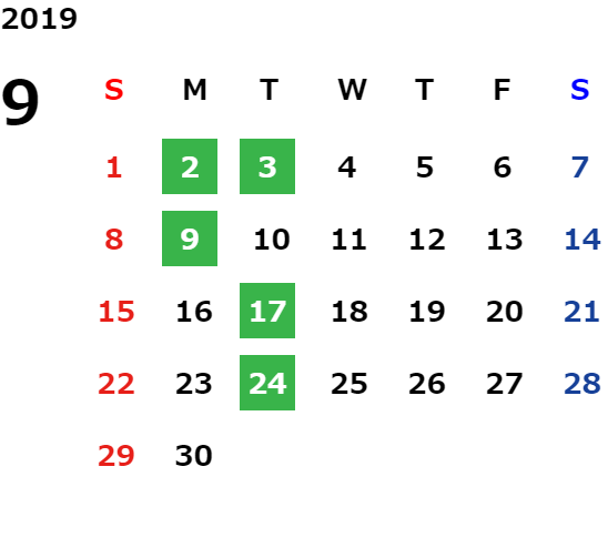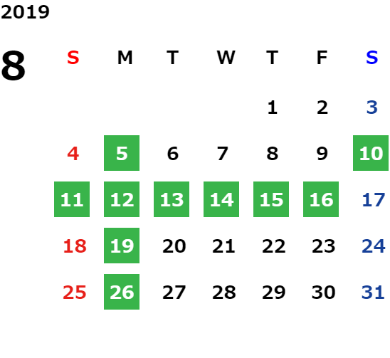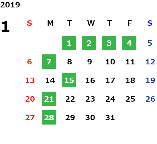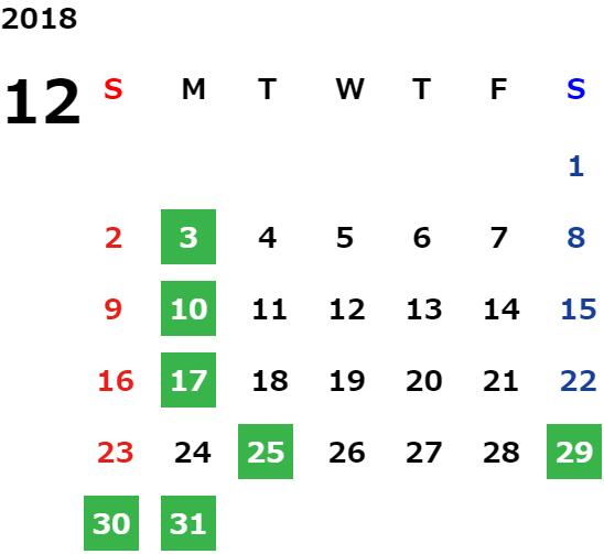 営業日カレンダー