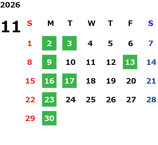 営業日カレンダー